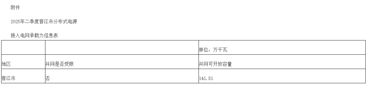 截至2025年第二季度,晉江地區分布式光伏并網可開放容量141.81萬千瓦。