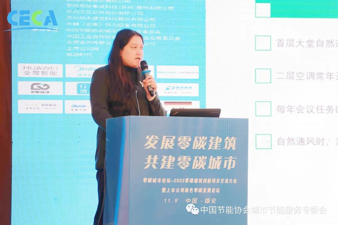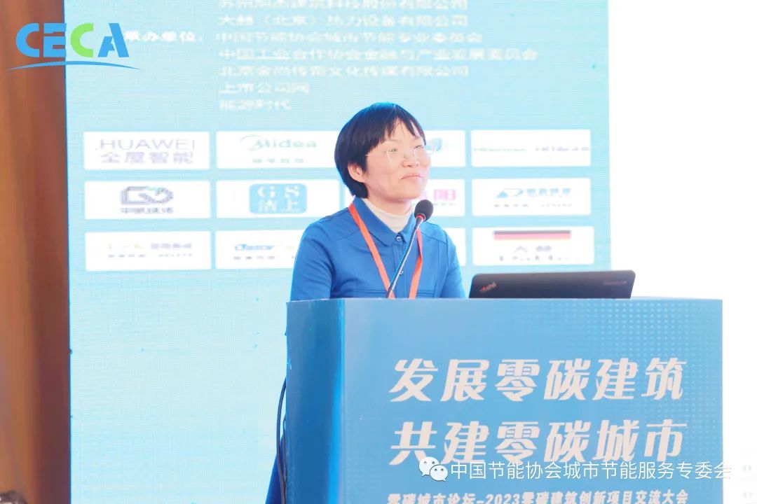 大赫(北京)熱力設備有限公司董事長陳秀容作題為《大赫零碳建筑高效節能供暖技術及運營模式》的技術交流分享