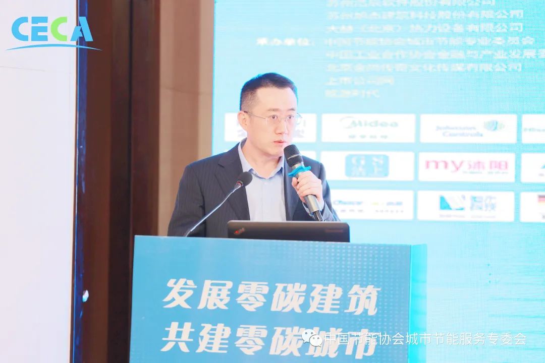 中國電建上海電力設計院綠色城市事業部節能技術總監李碩作題為《雙碳背景下的建筑與園區—“能源+城市”零碳建筑理解與實踐》演講