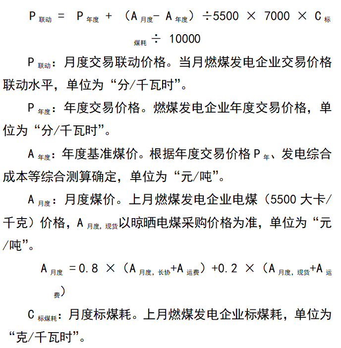 附件:月度煤電價格聯(lián)動計算公式