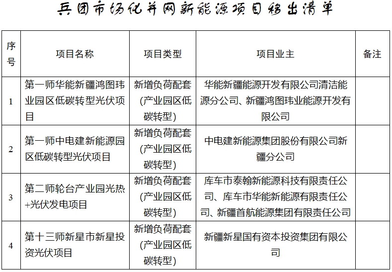 11月15日,新疆發(fā)改委發(fā)布《關(guān)于將第一師華能新疆鴻圖瑋業(yè)園區(qū)低碳轉(zhuǎn)型光伏項目等4個項目移出兵團(tuán)市場化并網(wǎng)新能源項目清單的公示》。