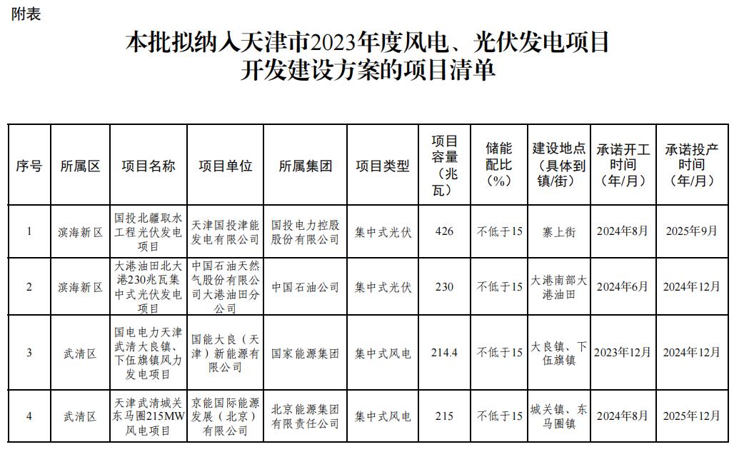 關于擬納入天津市2023年風電、光伏發電項目開發建設方案項目的公示